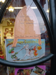 A primarily anglophone travel book store near Grote Markt had several Zwarte Piet candies as decorations in it's front window.
