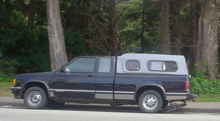 A truck outside of Golden Gate Park in San Francisco. Parked on a bike. Wtf?