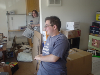 Sophie and Nicole continue to wrap the TV. I showed up around 11:00 am and left around 5:00. Other folks worked from 5:00 = 11:00 pm. Sophie kept saying, "I have the friends ever!" but she still owes me dinner and a lot of beer.