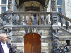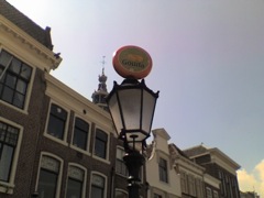 Although no cheese comes from within the city limits of Gouda, there's a lot of cheese made in the surrounding environs. A lot of which can be purchased at the Grote Markt when a market is happening. To emphasize that point, all the light poles in the Grote Markt have life-size cheese wheels on them