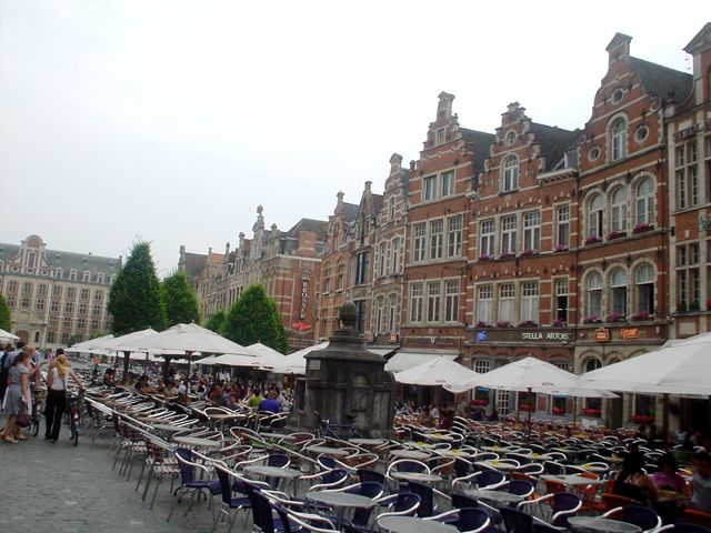 Buildings and cafes on the Oude Markt in Leuven, Belgium