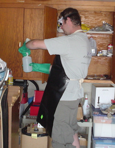 Mitch the mad scientist opens a bottle of rubbing alcohol to use in the titration