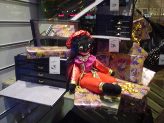 Zwarte Piet in the window of a jewelry store by Grote Markt in Den Haag.