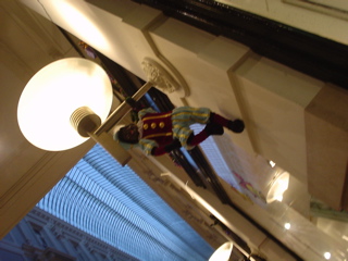 This Zwarte Piet was found lurking in a bag store. There are the legs of another Zwarte Piet in the upper left corner.